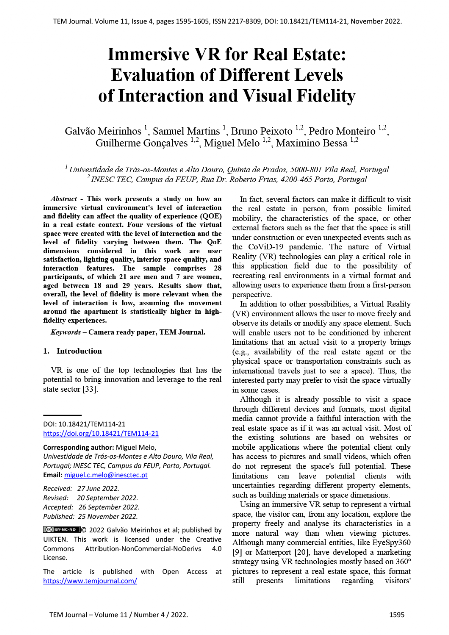 Immersive VR for Real Estate: Evaluation of Different Levels of Interaction and Visual Fidelity