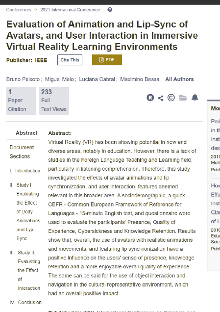 Evaluation of Animation and Lip-Sync of Avatars, and User Interaction in Immersive Virtual Reality Learning Environments