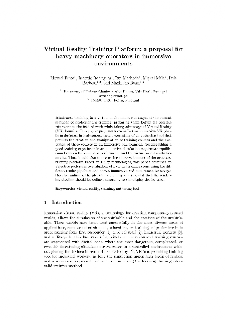 Virtual Reality Training Platform: a proposal for heavy machinery operators in immersive environments.